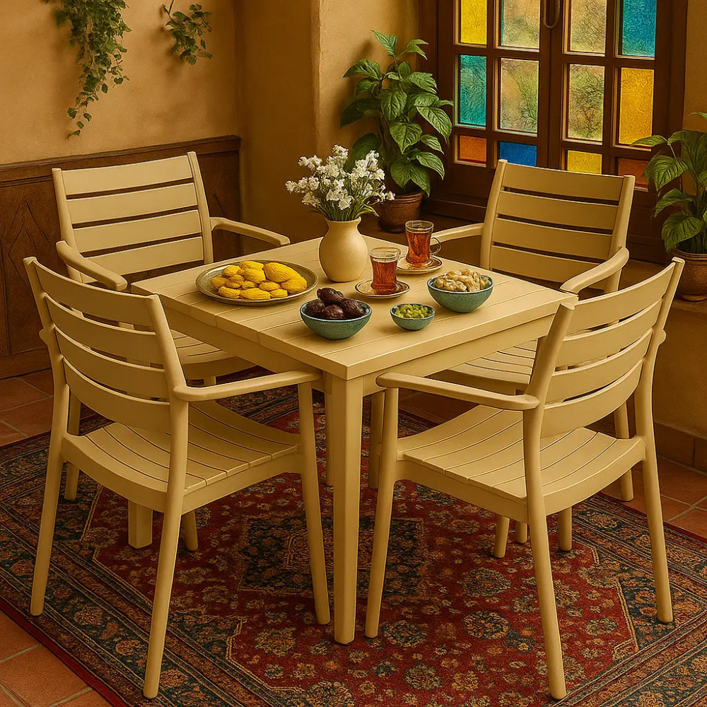 📌ست چهار نفره میز و صندلی تینا، ساخت «بابل کارپت»، ترکیبی از طراحی مدرن و کیفیت عالی برای فضاهای خانگی و فضای باز، انتخاب اول برای خانه، باغ، تراس، رستوران و ویلا.