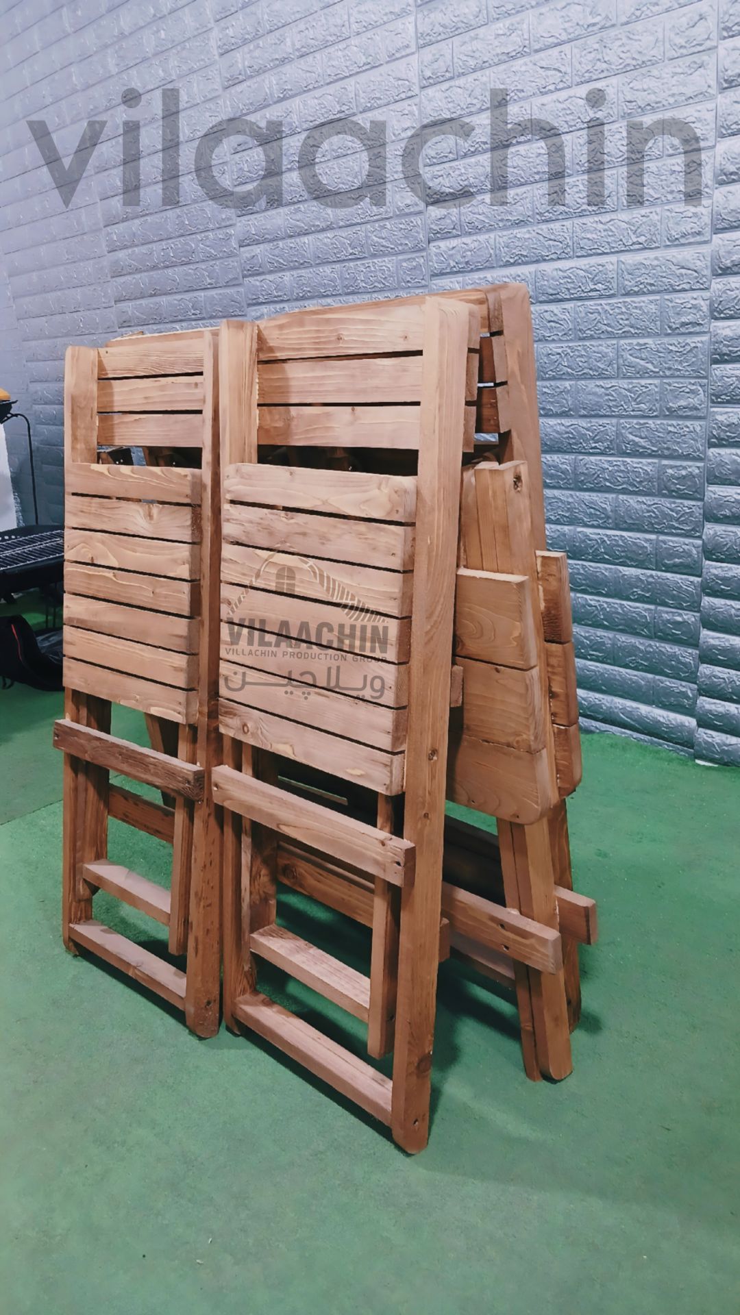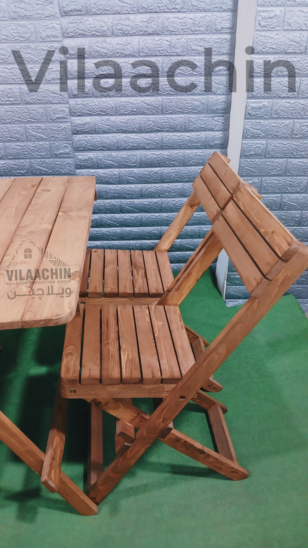 میز و صندلی چوبی تاشو 4نفره با چوب پایه با پهنای 6سانتی متر و ضخامت 2سانتی متر جنس چوب کاج روس و با رنگ قهوهای شتری به ابعاد میز ۹٠×۵۵ سانتی متر متر تولید میگردد. ابعاد نشیمن صندلی حدودا ۳۲×32 سانتی بوده و کفی صندلی به سمت بالا و داخل جمع شده و میز نیز به دو طرف جمع میشود. این مدل قابل حمل با استفاده از خودرو سواری میباشد . قطعا بسیاری از مردم به سفر علاقه دارند؛ ولی چون در بسیاری از مقاصد طبیعی گردشگری وسایل رفاهی کافی وجود ندارد، از این هدف بازمیمانند. صندلی سفری تاشو چوبی مناسب همین دسته از افراد است. این صندلی را به صورت تاشو طراحی کردهاند تا بتوان زمان جمع کردن، حجم آن را بسیار کاهش داد؛ این صندلی ساختاری مقاوم دارد و تحمل وزن تا 120 کیلوگرم را دارد و در موقعیتهای مختلف قابلاستفاده است. صندلی تاشو ساختاری مستحکم و مقاوم دارد که میتوان از آن در سفر، ماهیگیری و محیطهای باز درون شهری استفاده کرد.